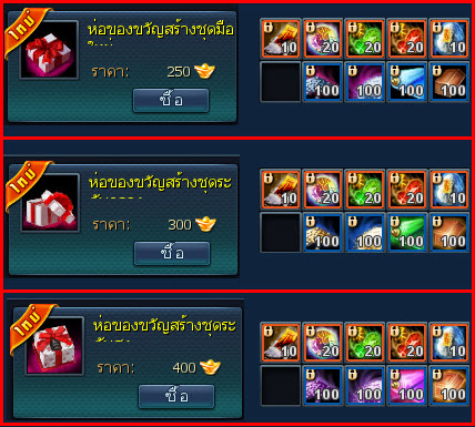 1. เซทไอเทมสร้างอุปกรณ์ระดับต่าง ๆ