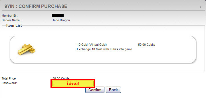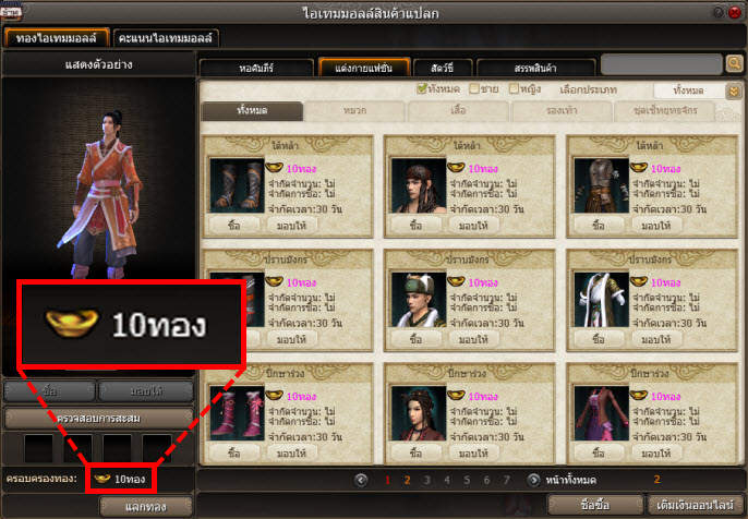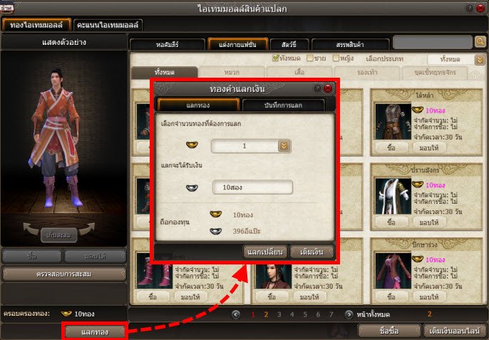 เมื่อแปลงเงินแล้ว ก็เข้าเกมดูในส่วนของ ไอเทมมอลล์ (Y) จะได้รับทองตามจำนวนที่แปลงเข้าไป