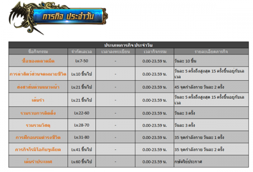 ช่วง Close Beta นี้มีเควสต์อะไรบ้าง และสามารถรับได้ในเวลาไหนบ้าง** หมายเหตุ : นี่เป็นข้อมูลเบื้องต้นเท่านั้น ผู้เล่นสามารถอ่านรายละเอียดเควสต์ และของรางวัลได้จากภายในเกม